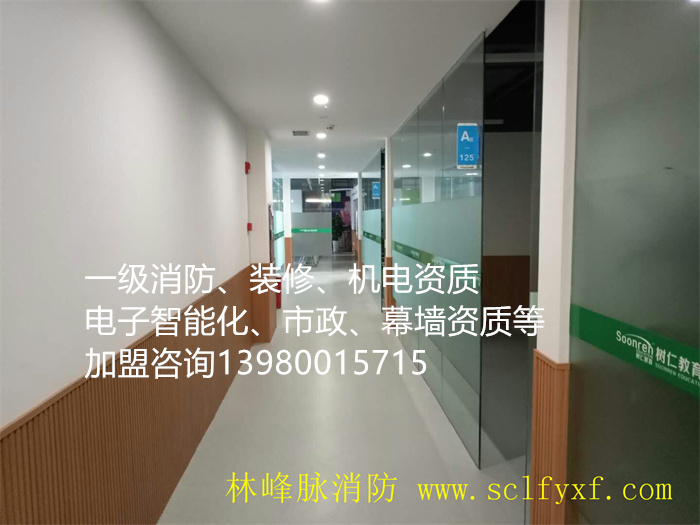 林峰脉俞建安装工程有限公司拥有一级消防资质、电力设施承装(承修、承试)资质,电力工程用承装修饰资质,机电资质,输变电资质等十几项建筑资质,承接几百项大型消防项目施工建设,拥有丰富的经验,配备充足的建筑领域专业人员,是值得信任的一级消防公司,欢迎有志于消防事业的朋友来电13980015715加盟合作。